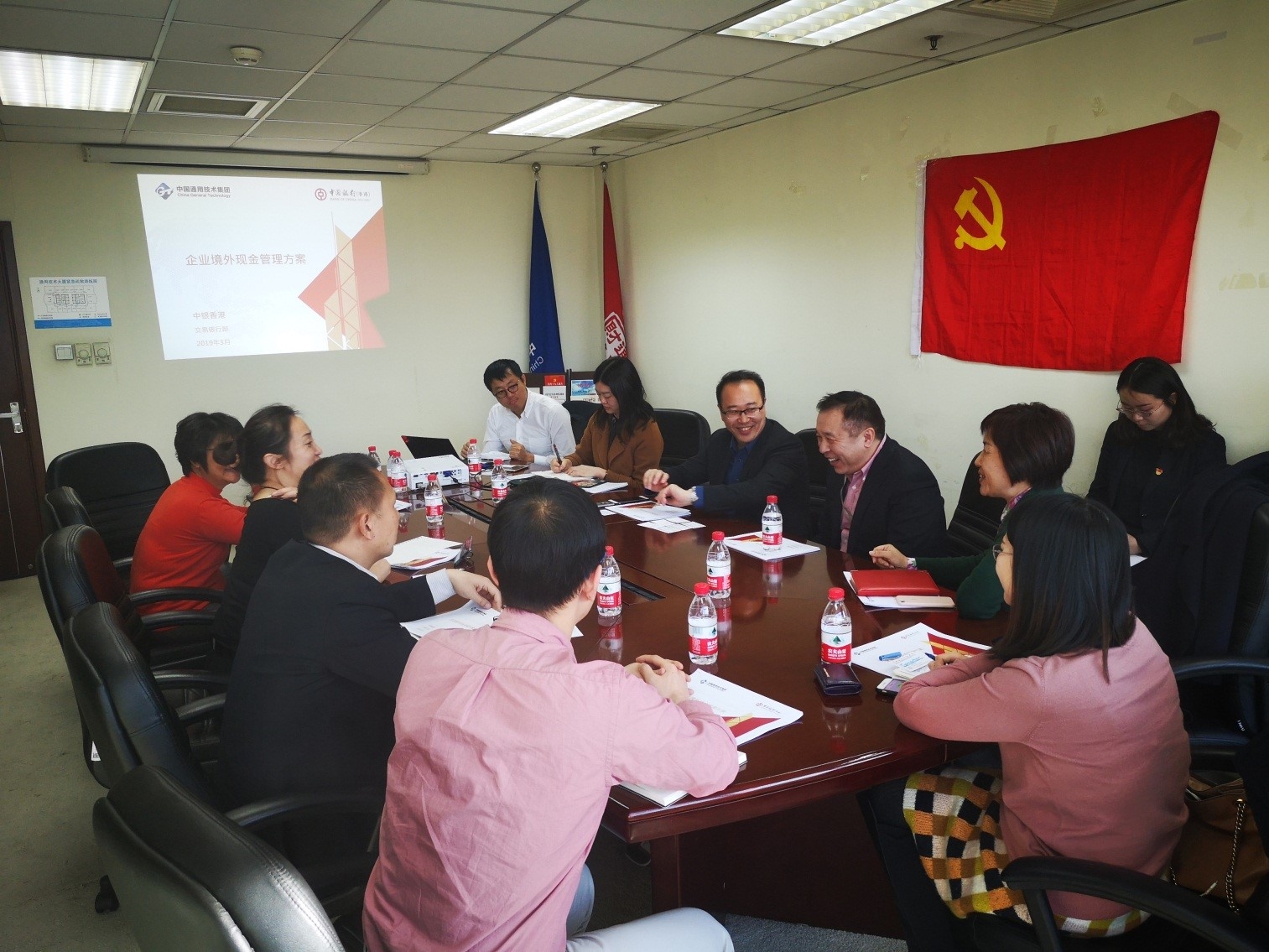 2019年3月5日下午,财务公司与中国银行及中银香港的专业人士就境外资金管理模式进行了专题座谈,对中国银行系统的全球资金管理系统的架构及功能特点进行了全面了解。财务公司党委书记、董事长卿虹及相关部门负责人参加了座谈。