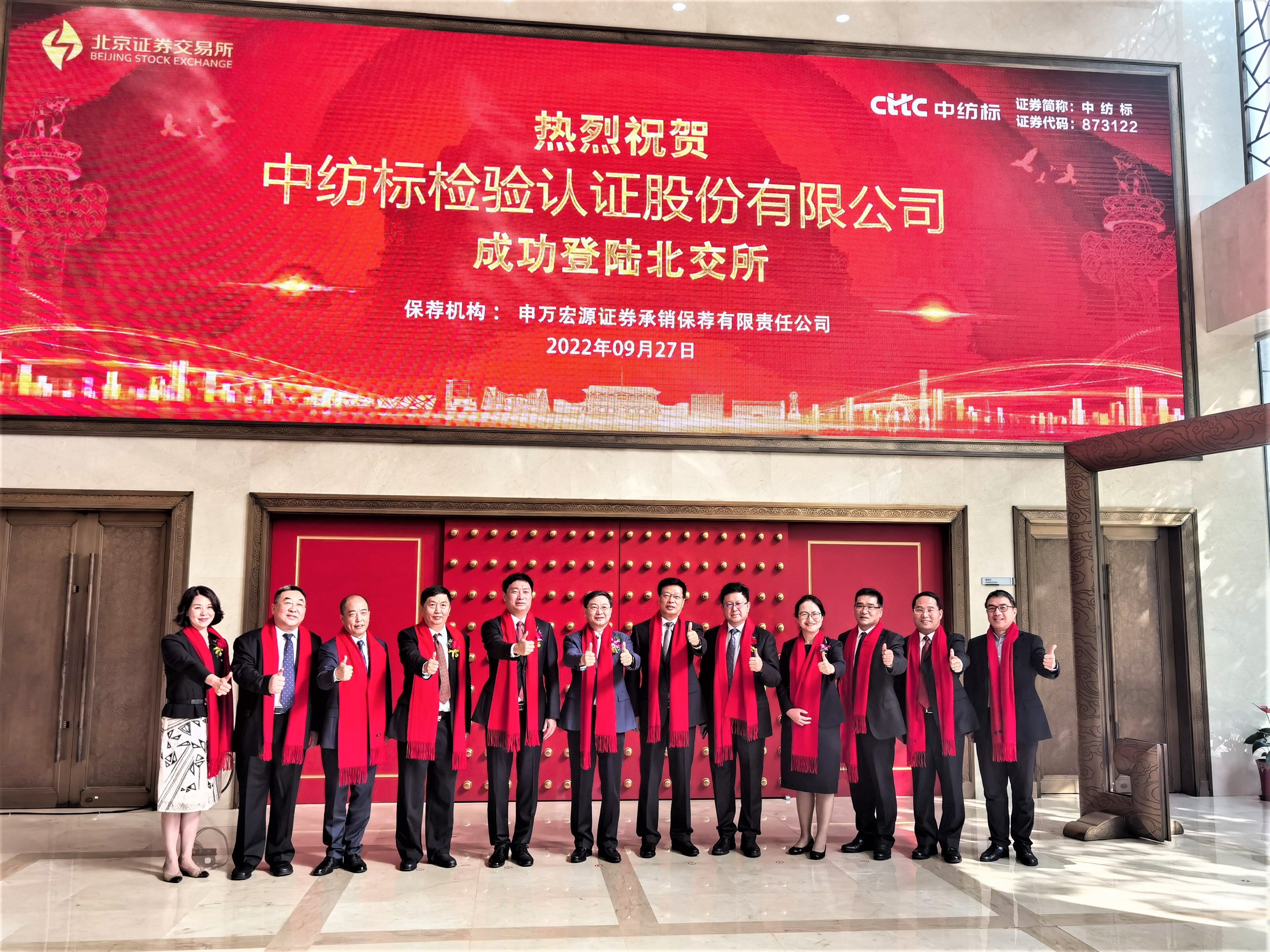 9月27日,中纺标检验认证股份有限公司(简称中纺标)在北京证券交易所成功敲钟,正式挂牌交易,成为纺织品检测领域北交所第一股。冯松涛总经理代表通用技术财务公司参加了上市仪式。