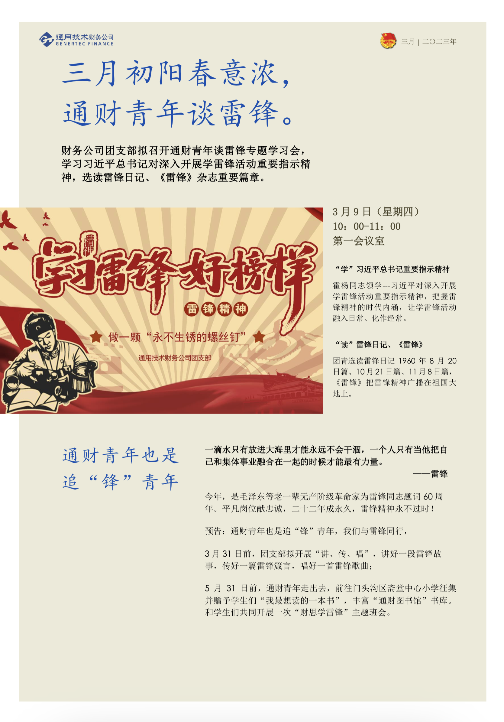 通用技术财务公司团支部召开年度学雷锋动员会
