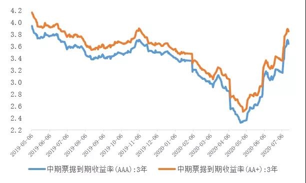 近一年中票(AAA3Y和AA+3Y)收益率走势