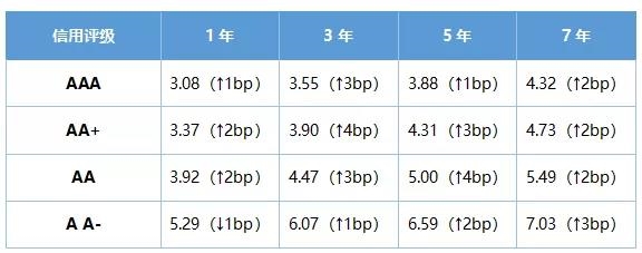 中债中短期票据AAA曲线5Y收益率上行10.4BP至3.881%,中债企业债AAA曲线5Y收益率上行10.4BP至3.8812%,城投债AAA曲线5Y收益率上行3.34BP至3.8881%。