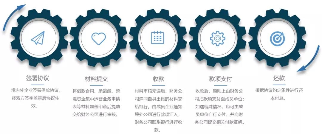 对应外债引入业务,即通过跨境资金池,财务公司可以为成员单位将境外池内其他企业的多币种外债引入,并根据借款合同的内容协助成员单位进行付款。
