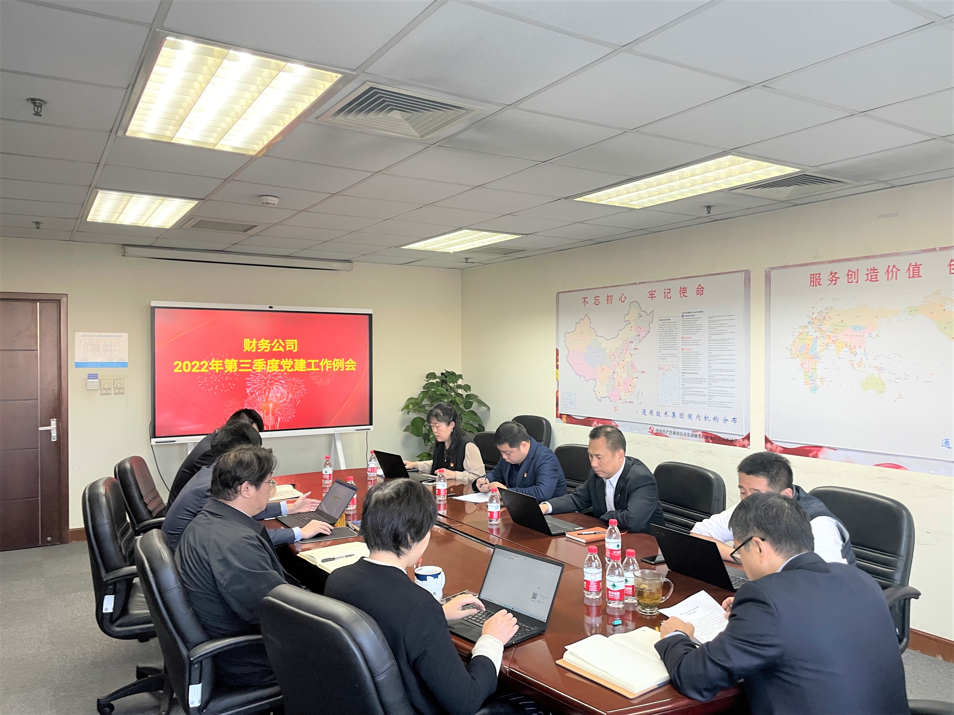 10月18日上午,通用技术财务公司召开2022年第三季度党建工作例会。会议由公司党委书记、总经理冯松涛主持,公司纪委书记、副总经理祝旭明,党委委员、副总经理徐艺,各支部书记、委员、党群工作部全体人员参会。