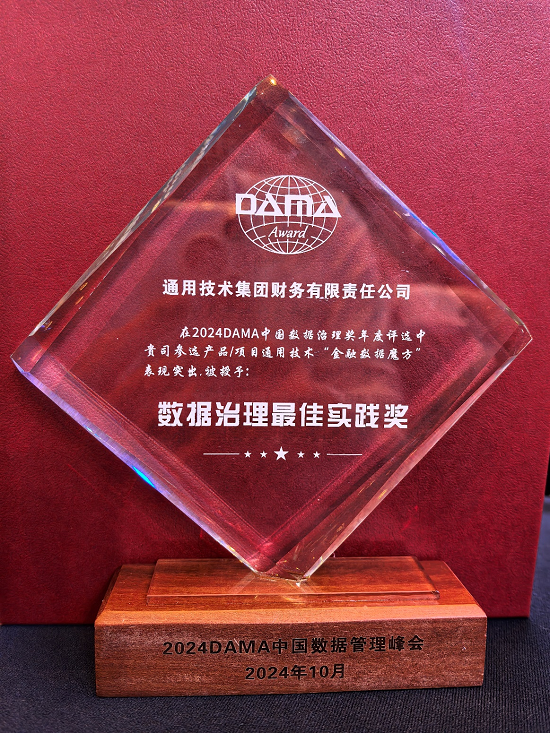 通用技术财务公司获得“2024 DAMA中国数据治理最佳实践奖”殊荣