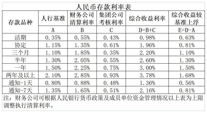 (2)通知存款:通知存款不论存期多长,按成员单位提前通知的期限长短分为一天通知存款和七天通知存款两个品种。一天通知存款必须提前一天通知约定支取存款,七天通知存款必须提前七天通知约定支取存款,也可办理通知存款自动续存。通知存款最低起存金额为50万元,最低支取金额为10万元。